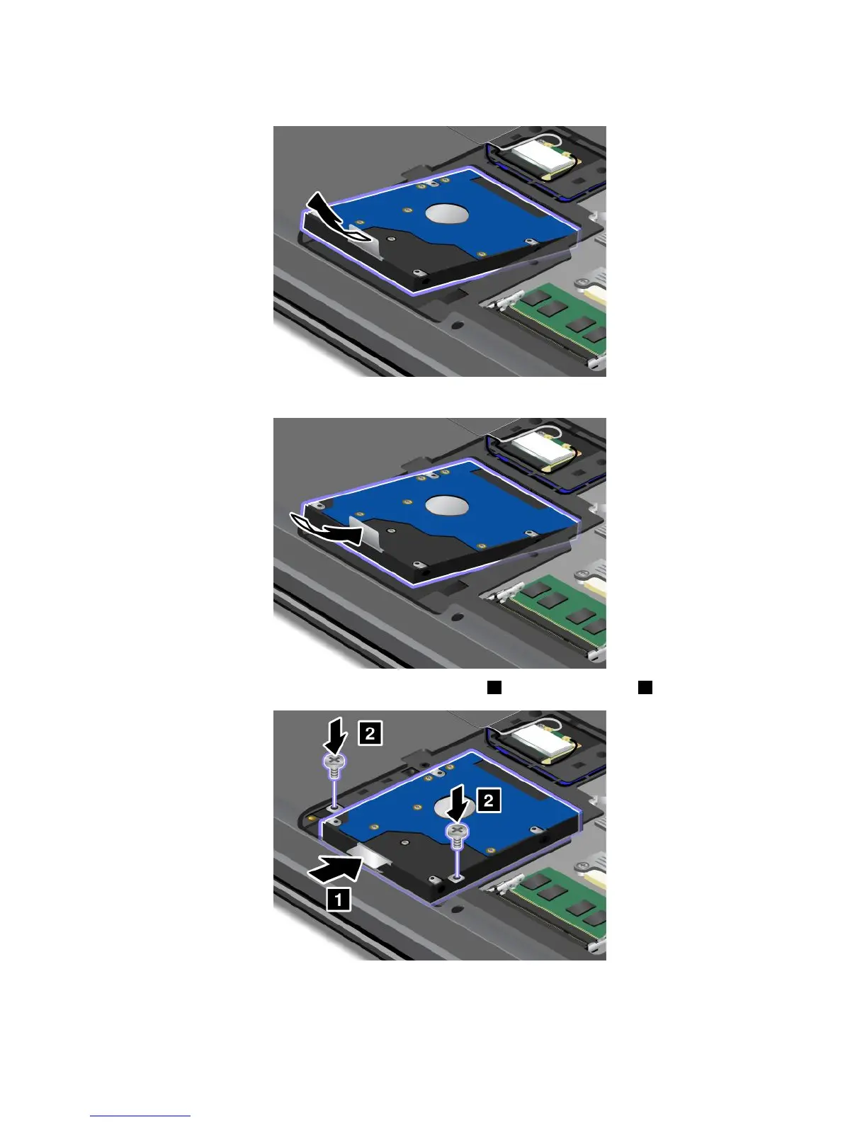 8.Задвиньтежесткийдиск,плотновставьтееговразъем1иустановитевинты2.