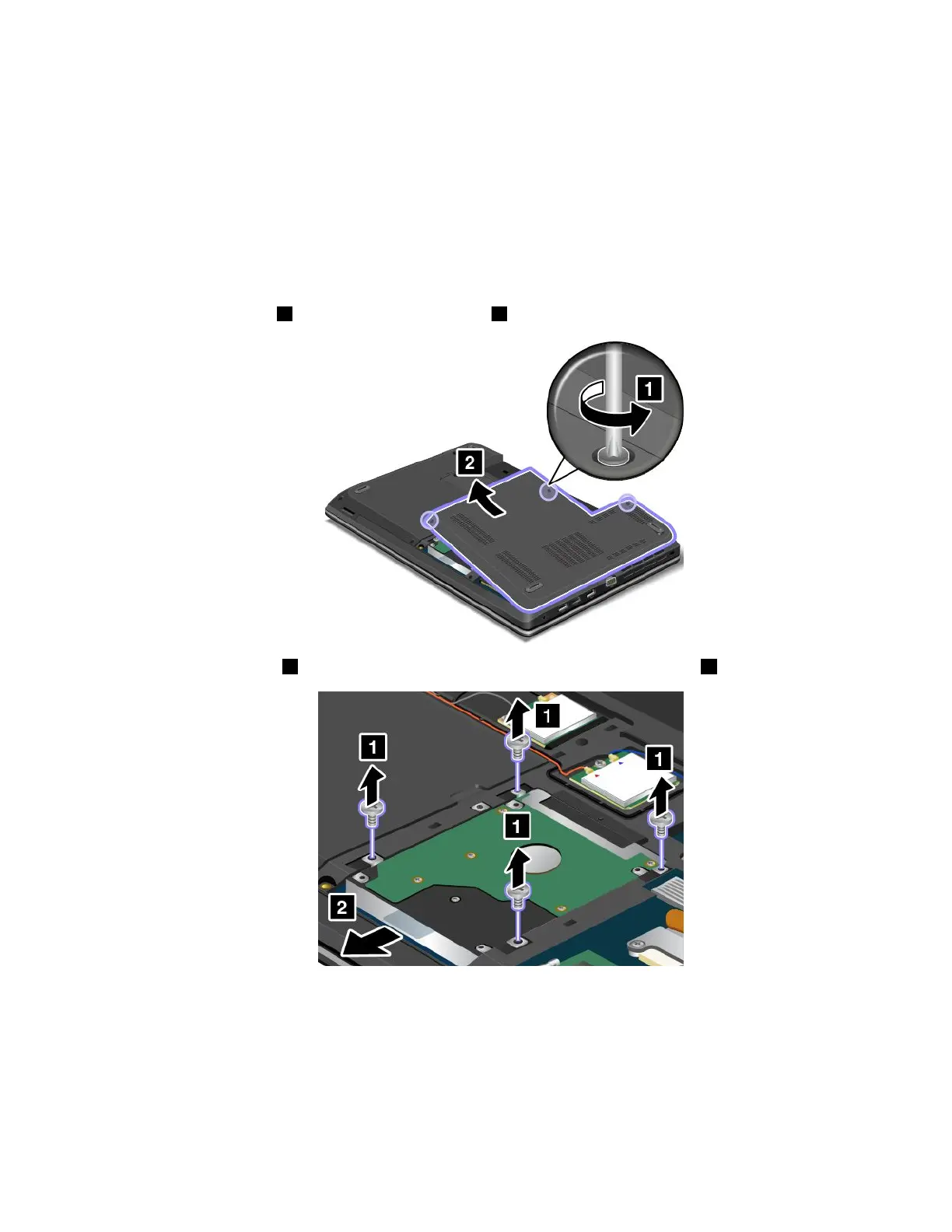 5.Removethescrews1,andthenslidetheharddiskdriveorsolid-statedriveout2.