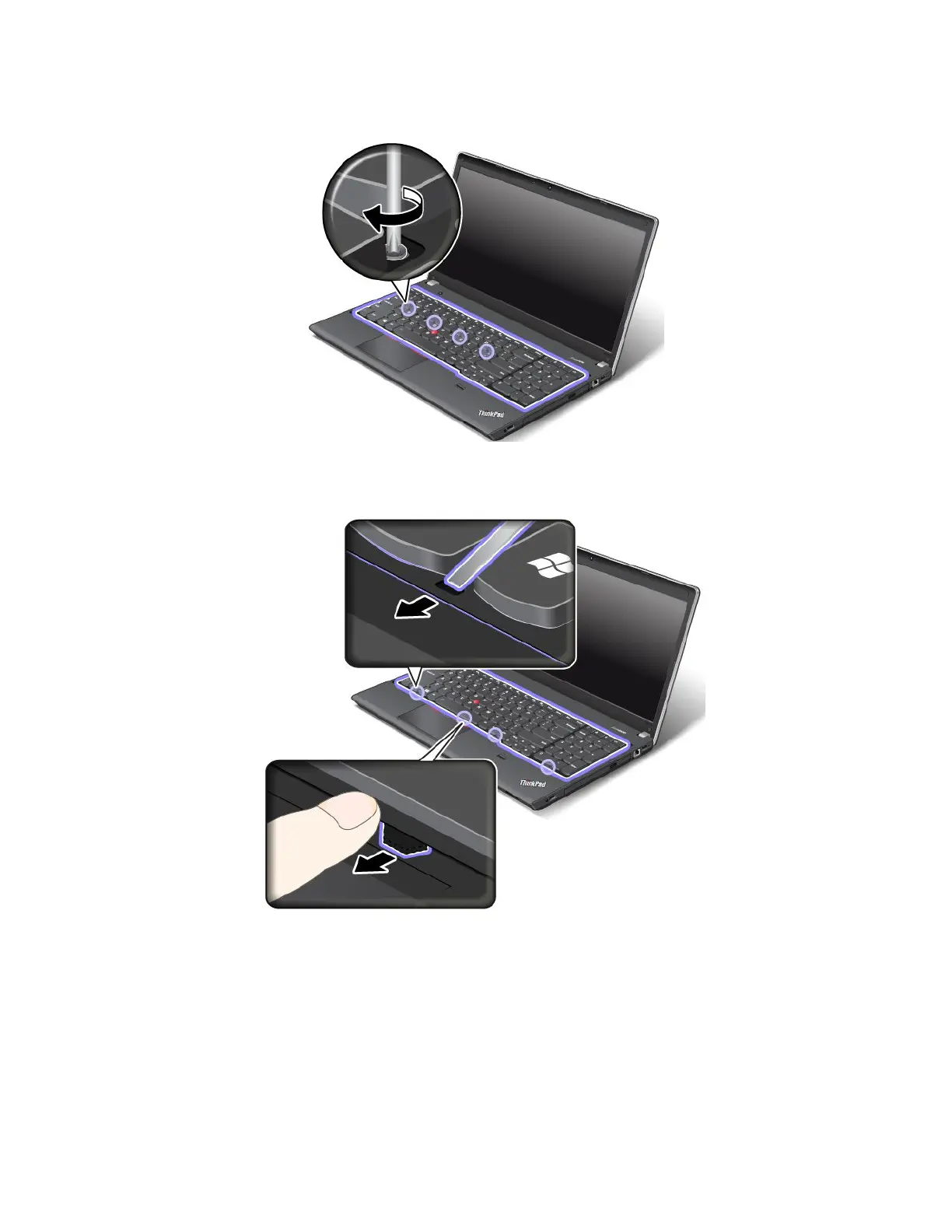 ofthekeyboardframeunderthekeyboardbezelbypushingthelatcheswithyourngerasshown.