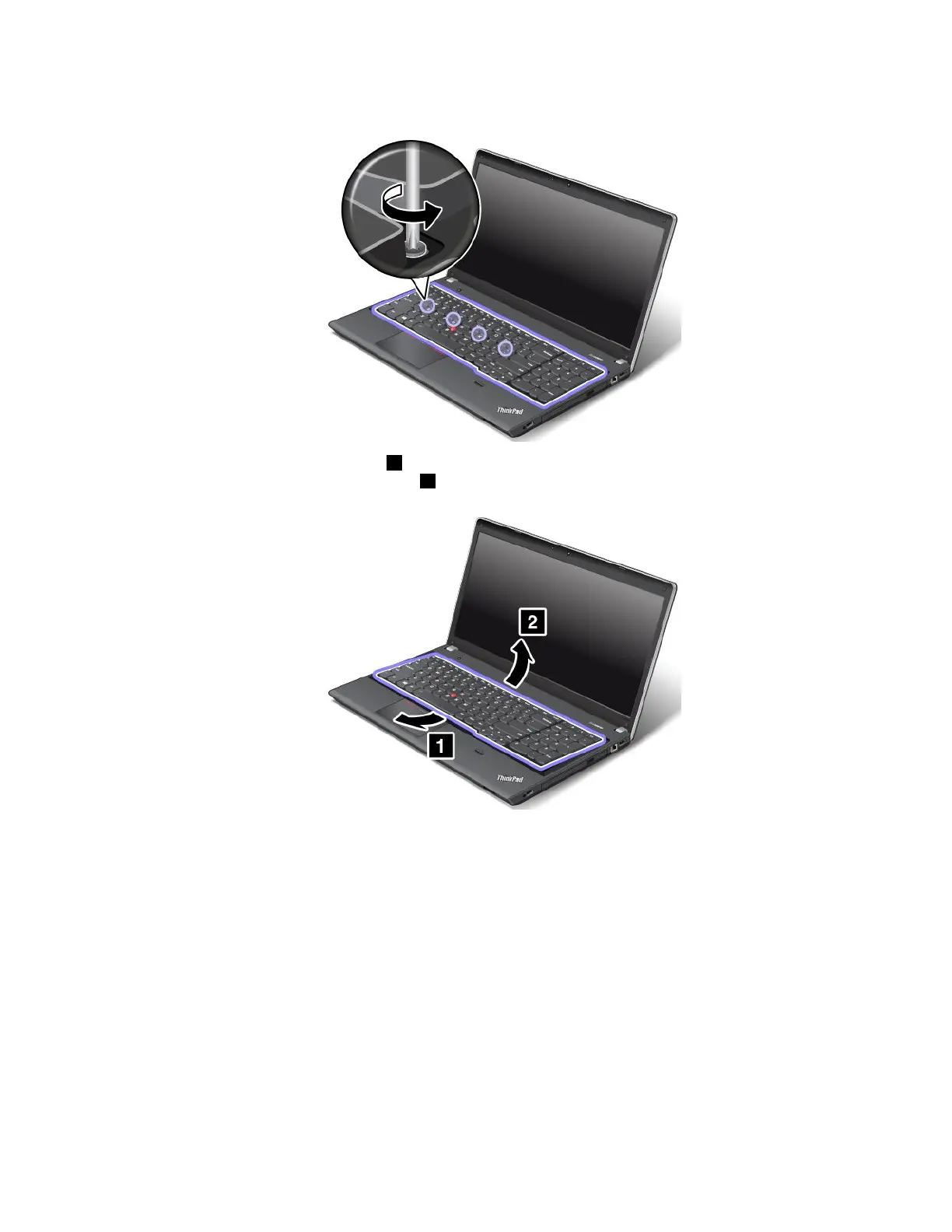7.Loosenthescrewsthatsecurethekeyboardwiththekeyboardmulti-tool.
