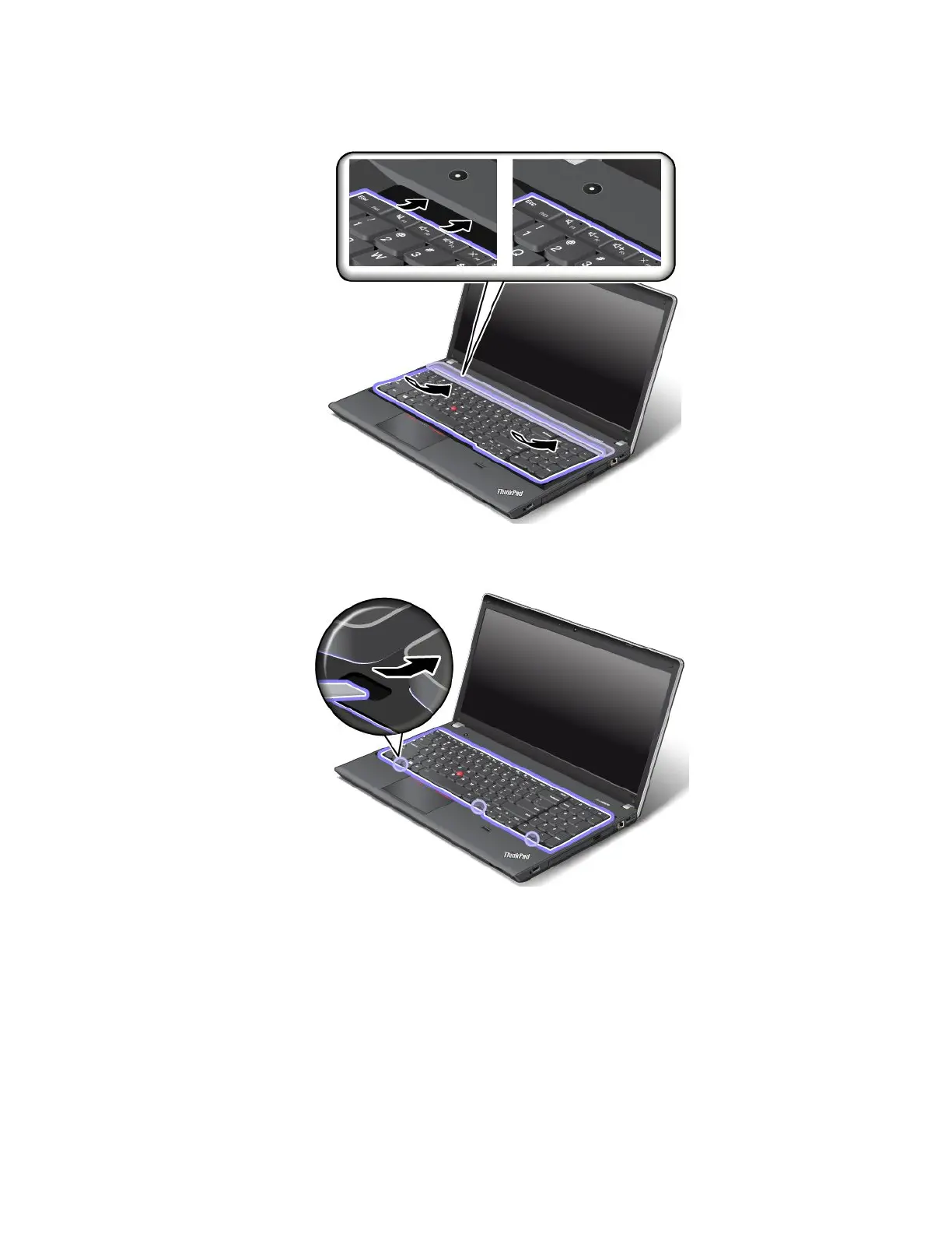2.Insertthekeyboardintothespaceundertheframeofthekeyboardbezelasshown.