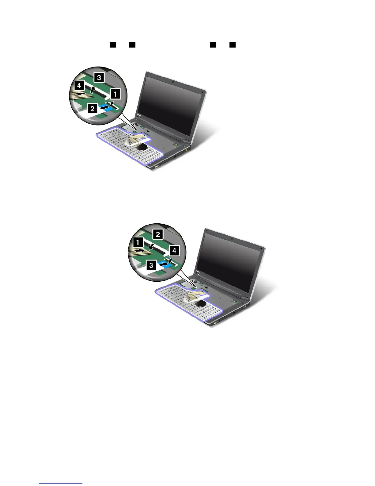 7.Removethecables2and4byippingtheconnectors1and3upwards.Nowthekeyboardhas