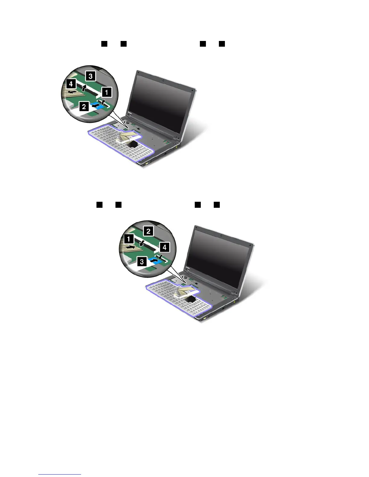 7.Removethecables2and4byippingtheconnectors1and3upwards.Nowthekeyboardhas