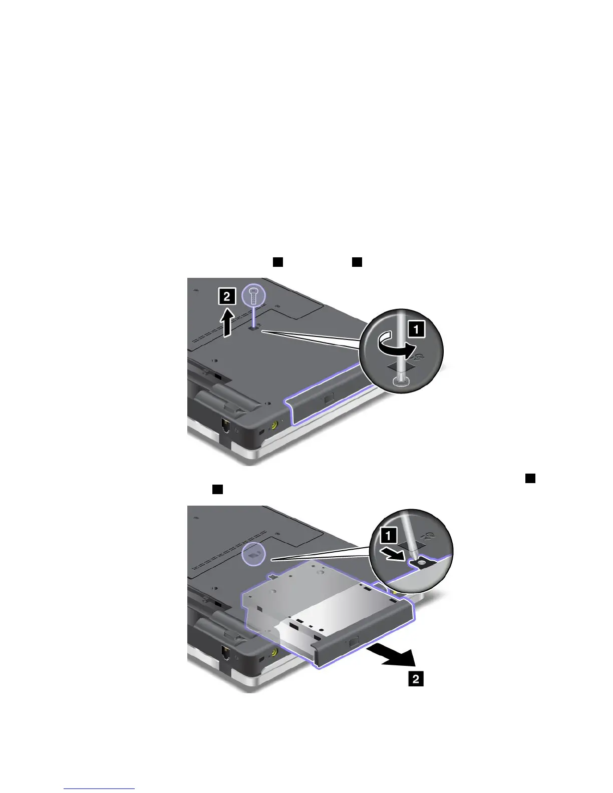 4.Loosenthescrewthatsecuresthedrive1,andremoveit2.