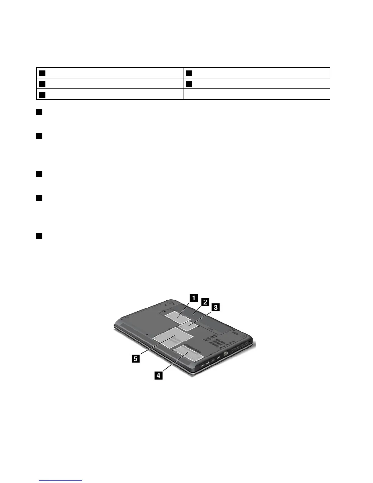 图 5. ThinkPad Edge E430 、 E430c 、 E435 、 E530 、 E530c 和 E535 底 视 图