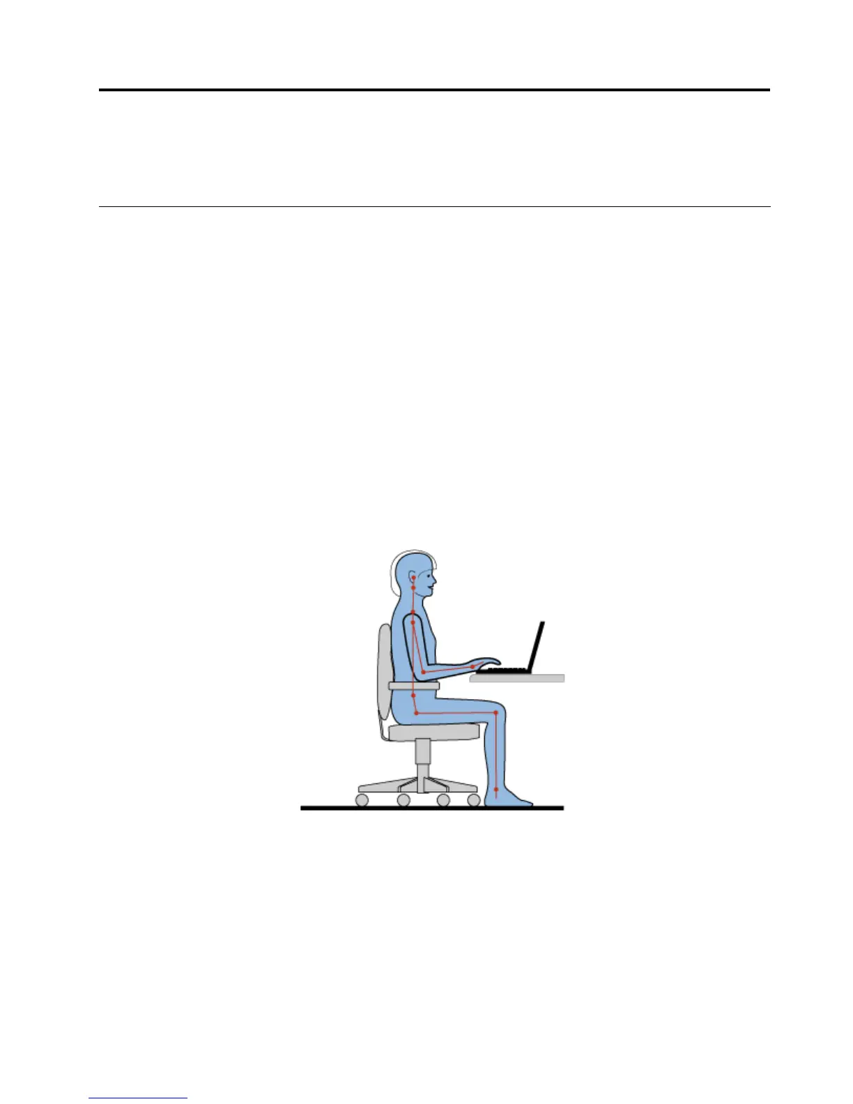 良好的人体工程学坐姿对于充分利用个人计算机和避免产生不适非常重要。请合理安排您的工作空间以及您