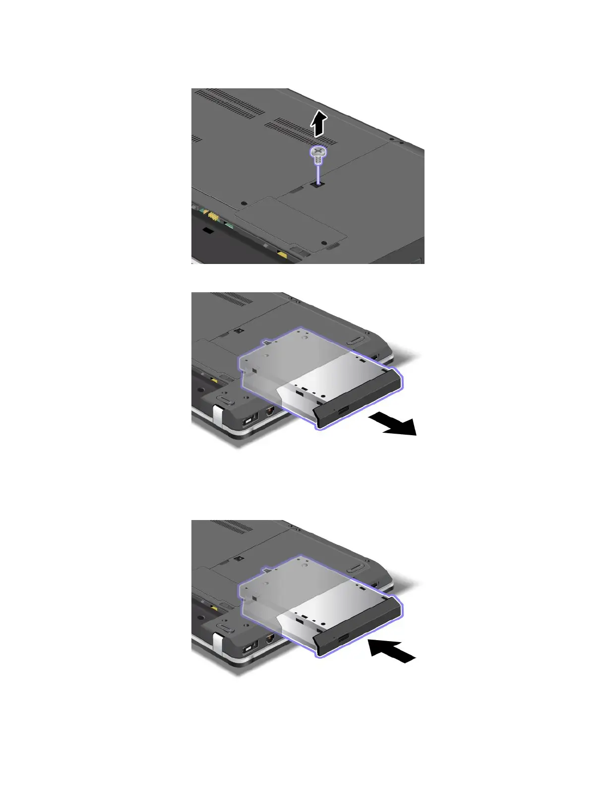 1.Inserttheopticaldriveintotheopticaldrivebay,andthenpressitrmlyintotheconnector.