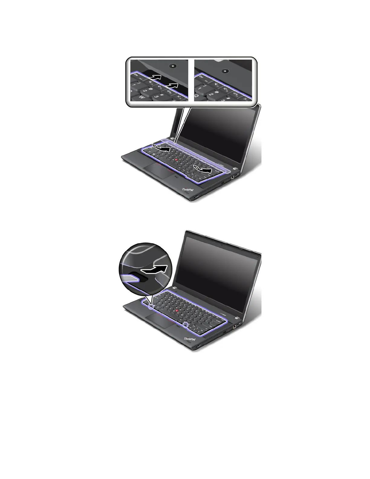 2.Insertthekeyboardintothespaceundertheframeofthekeyboardbezelasshown.