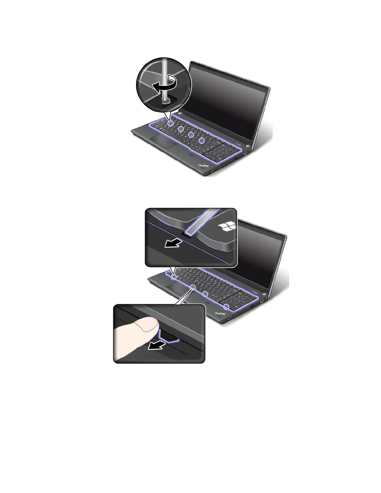 ofthekeyboardframeunderthekeyboardbezelbypushingthelatcheswithyourngerasshown.