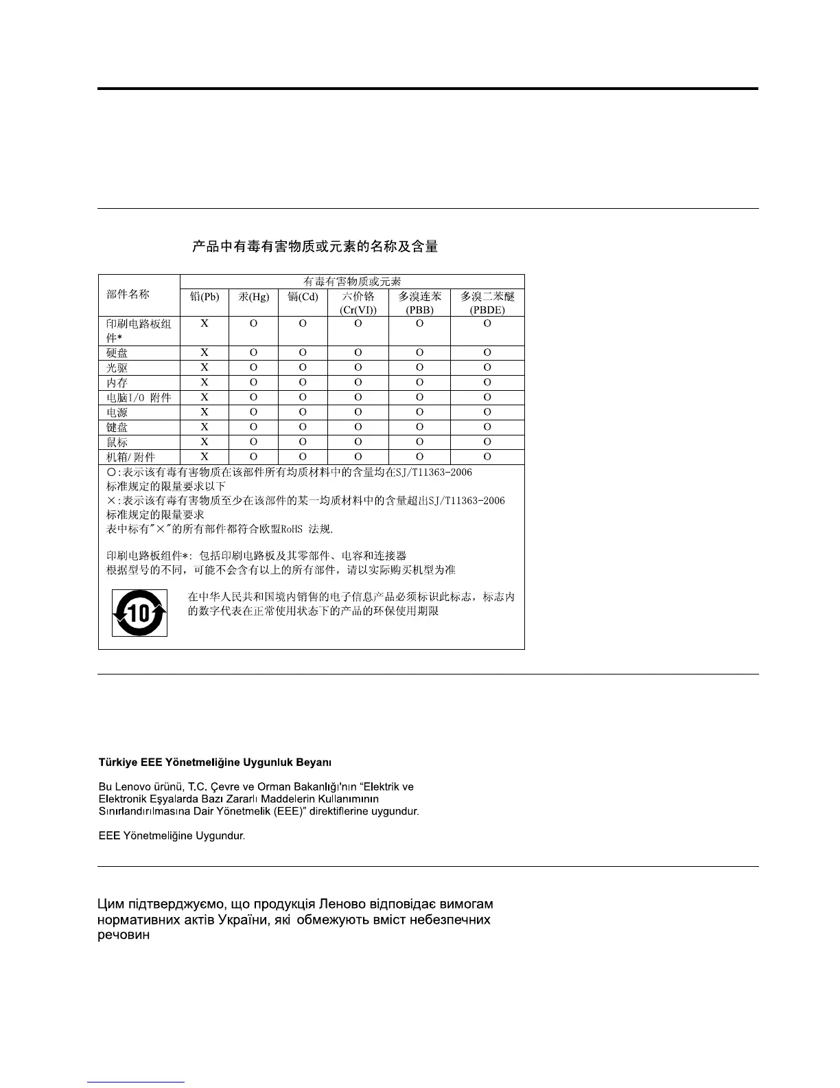 Lenovo ThinkPad Edge E535 - Appendix E. Restriction of Hazardous Substances Directive (Rohs); China Rohs; Turkish Rohs; Ukraine Rohs