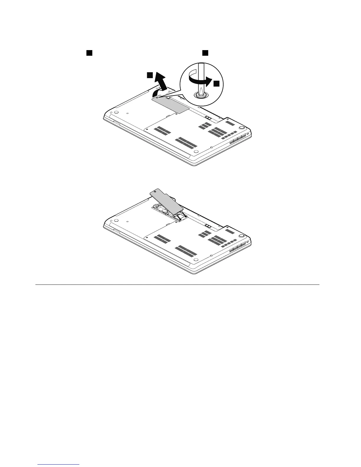 Loosenthescrews1andthenremovethesmallbottomcover2.