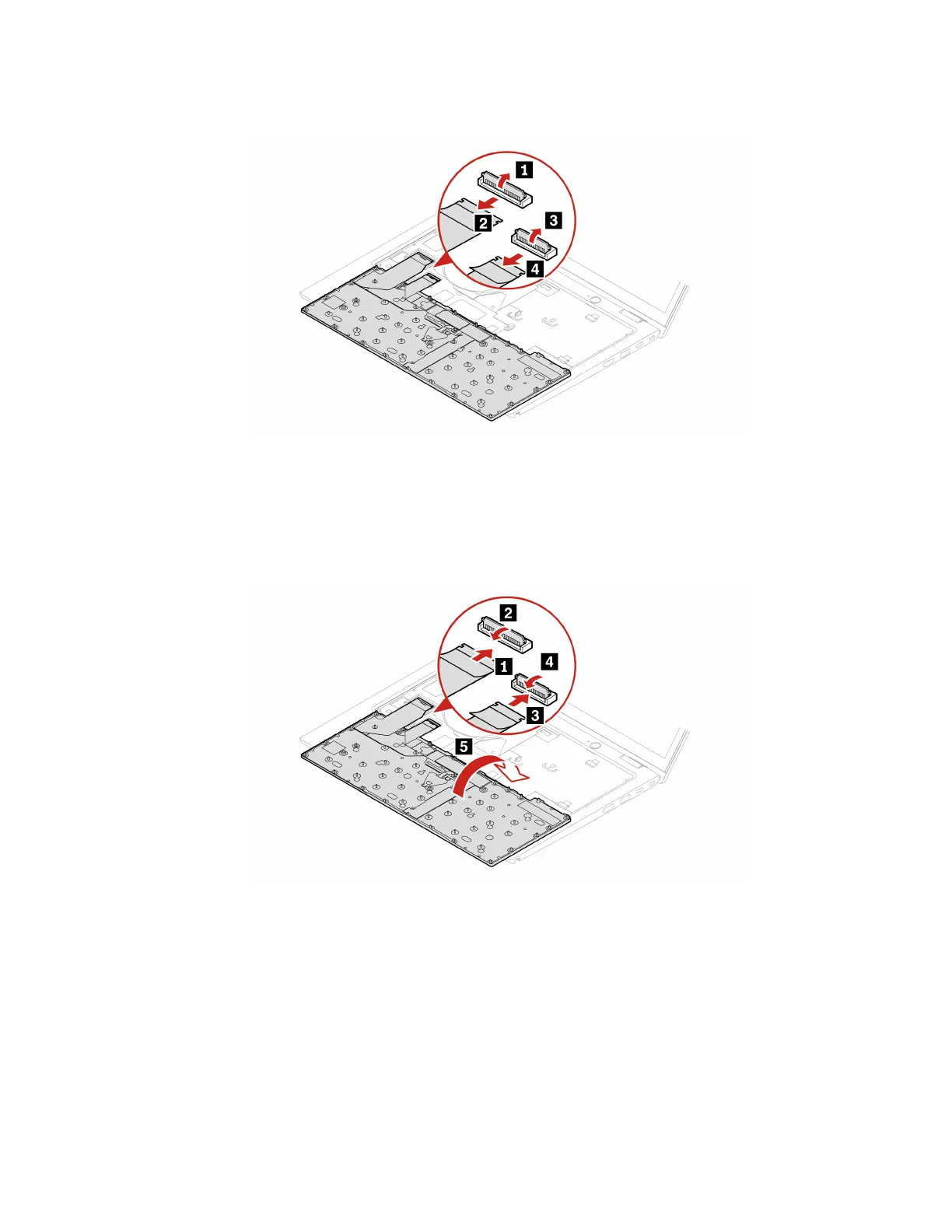 4. Put the keyboard on the palm rest as shown and detach the connectors. Then, remove the keyboard.
