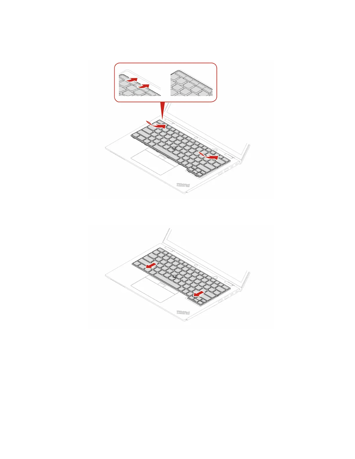 3. Slide the keyboard in the direction as shown. Ensure that the latches are secured under the keyboard