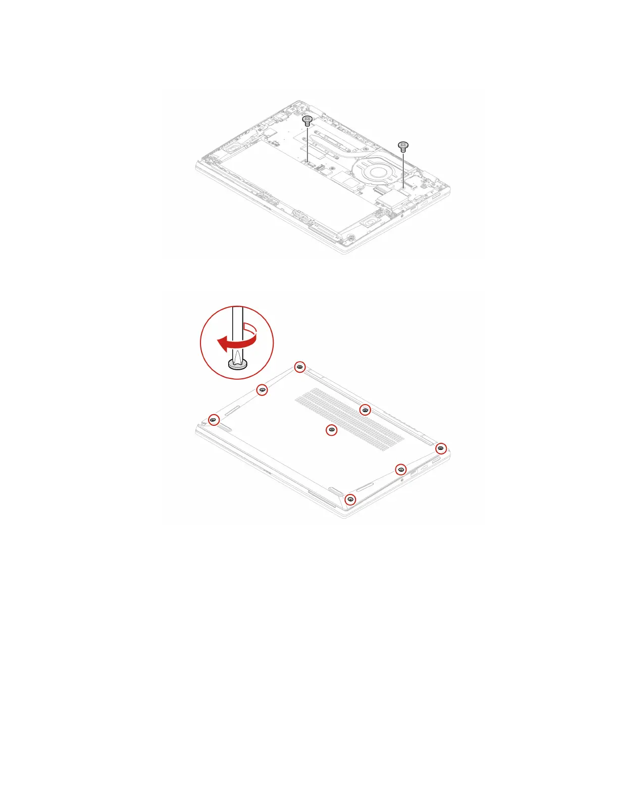 4. Turn over the computer. Then, tighten the screws to secure the keyboard.