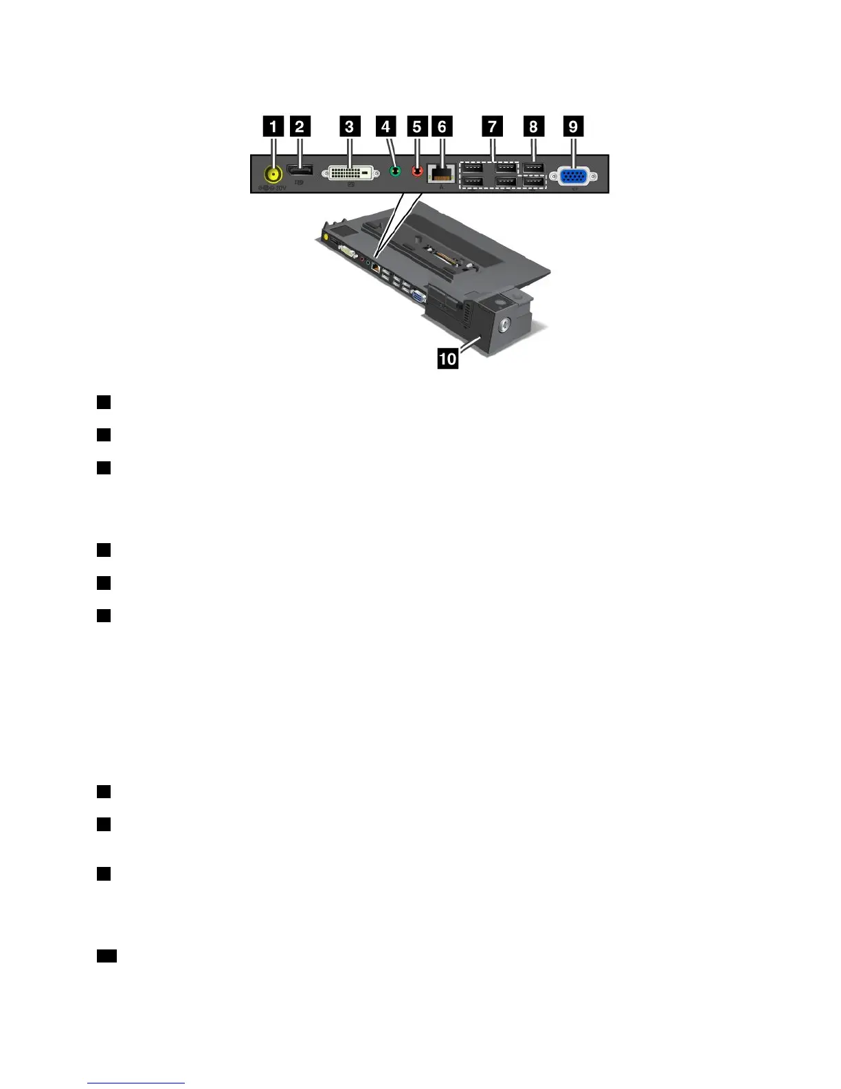 6 Ethernetconnector:ConnectthedockingstationtoanEthernetLAN.Theindicatorontheconnector