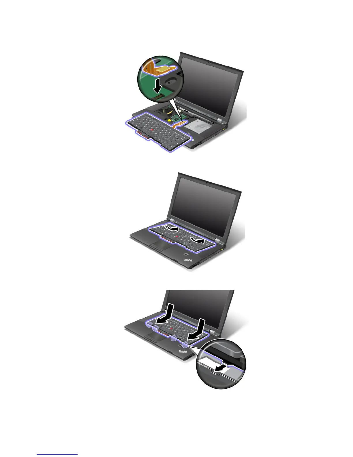 2.Insertthenewkeyboard.Ensurethattherearedgeofthekeyboardisundertheframe.