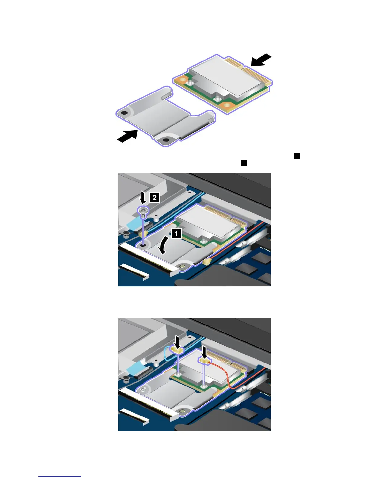 9.AlignthecontactedgeofthenewPCIExpressMiniCardwiththecorrespondingsocket1.Pivotthe