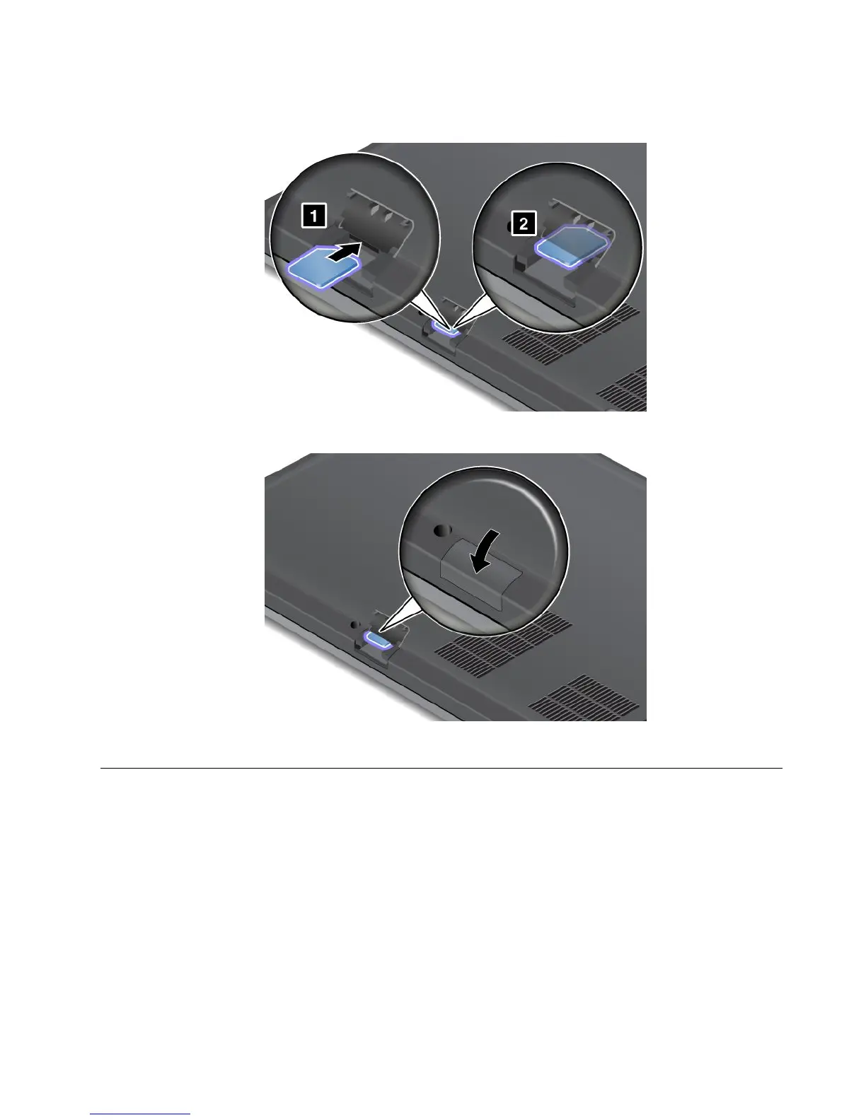 5.Holdthenewcardwiththemetalcontactfacingdownwards.Then,insertthecardrmlyintotheslot