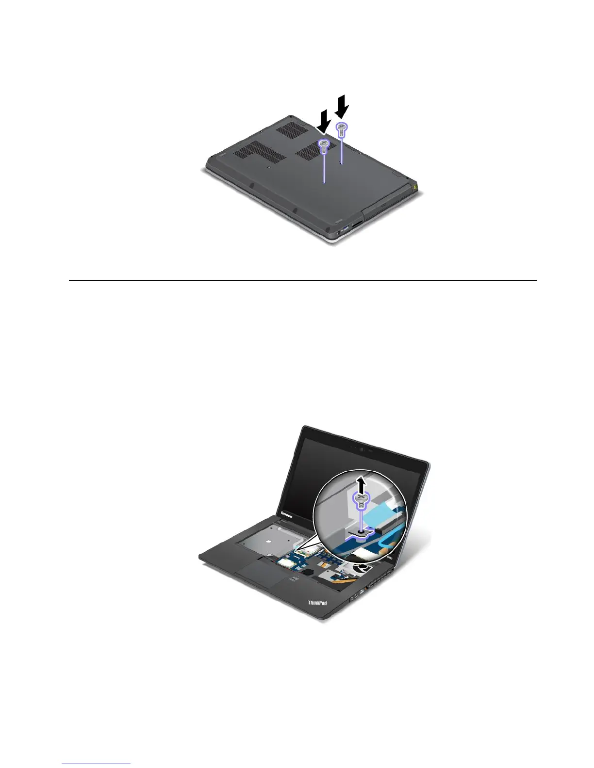 4.Closethecomputerdisplayandturnthecomputerover.Reinstallthetwoscrewsatthebottom.