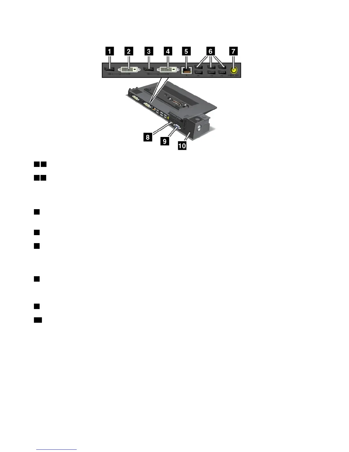 5Ethernetconnector:ConnecttheportreplicatortoanEthernetLAN.Theindicatorontheconnector