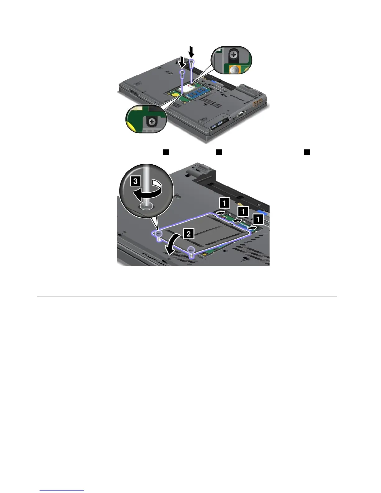 5.Putthememoryslotcoverbackinplace1,closethecover2,andthentightenthescrews3.