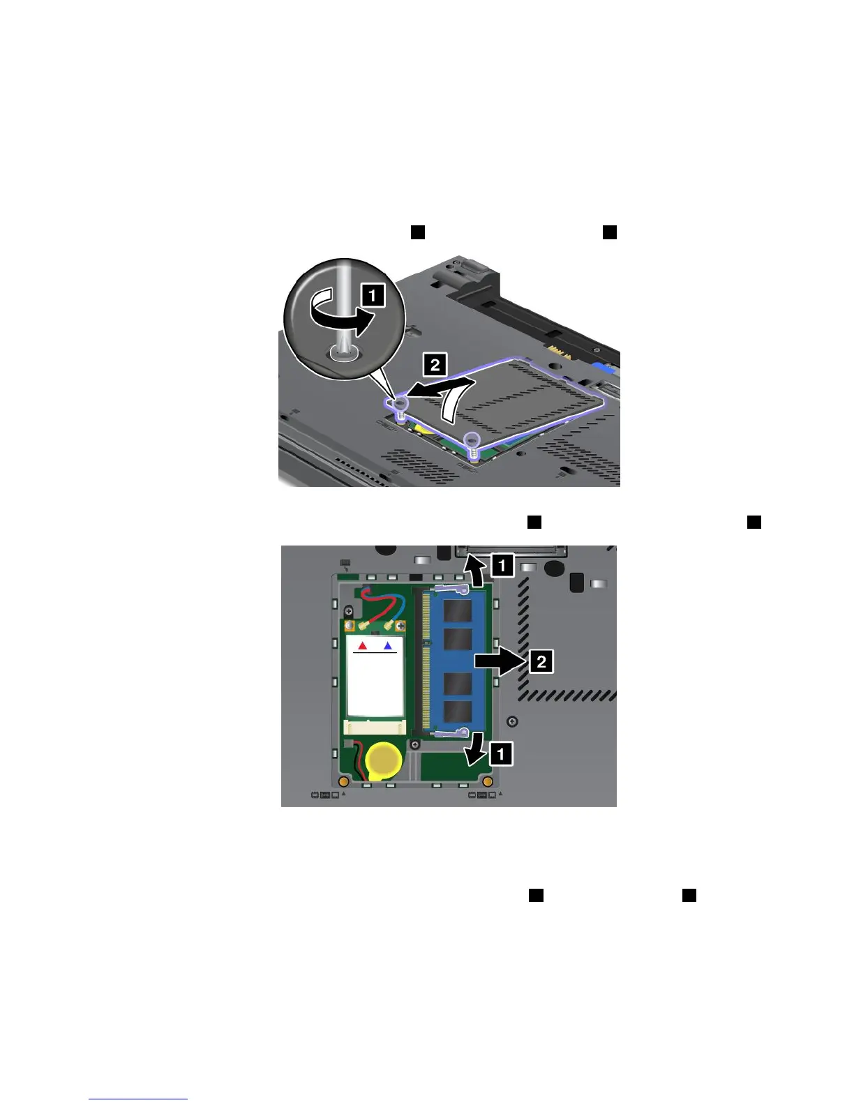 4.Loosenthescrewsonthememoryslotcover1,andthenremovethecover2.