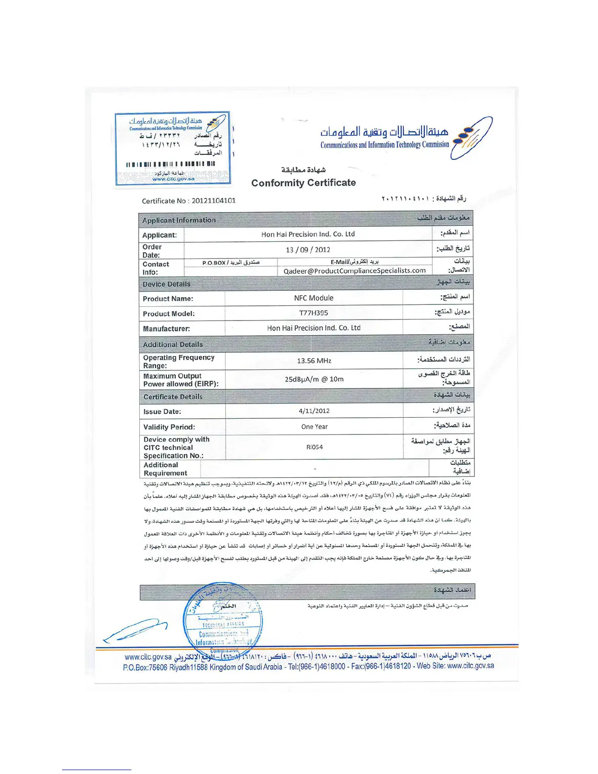 Lenovo ThinkPad Tablet2 - Notice for users in Saudi Arabia; T77 H395