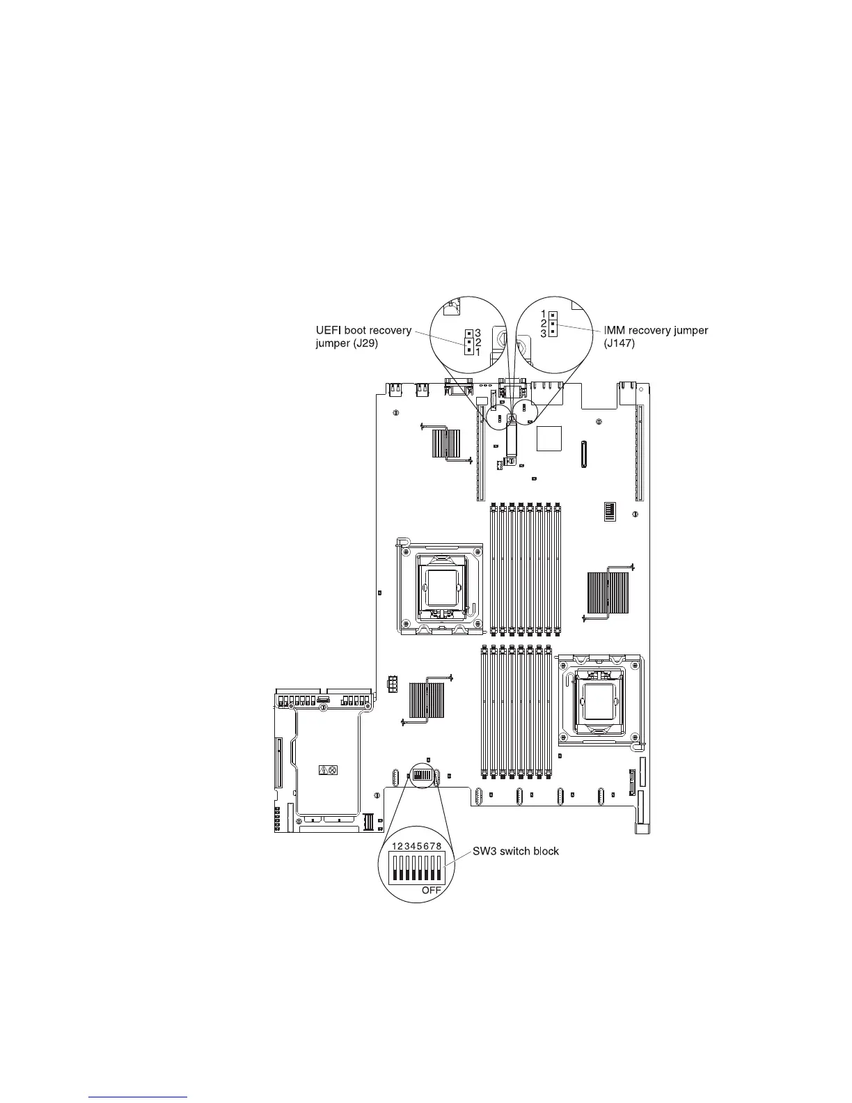 3. Locate the UEFI boot recovery jumper block (J29) on the system board.