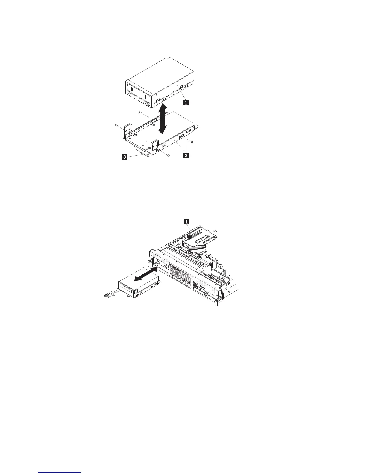 7. Remove the tape drive 1 from the drive tray 2 by removing the four screws