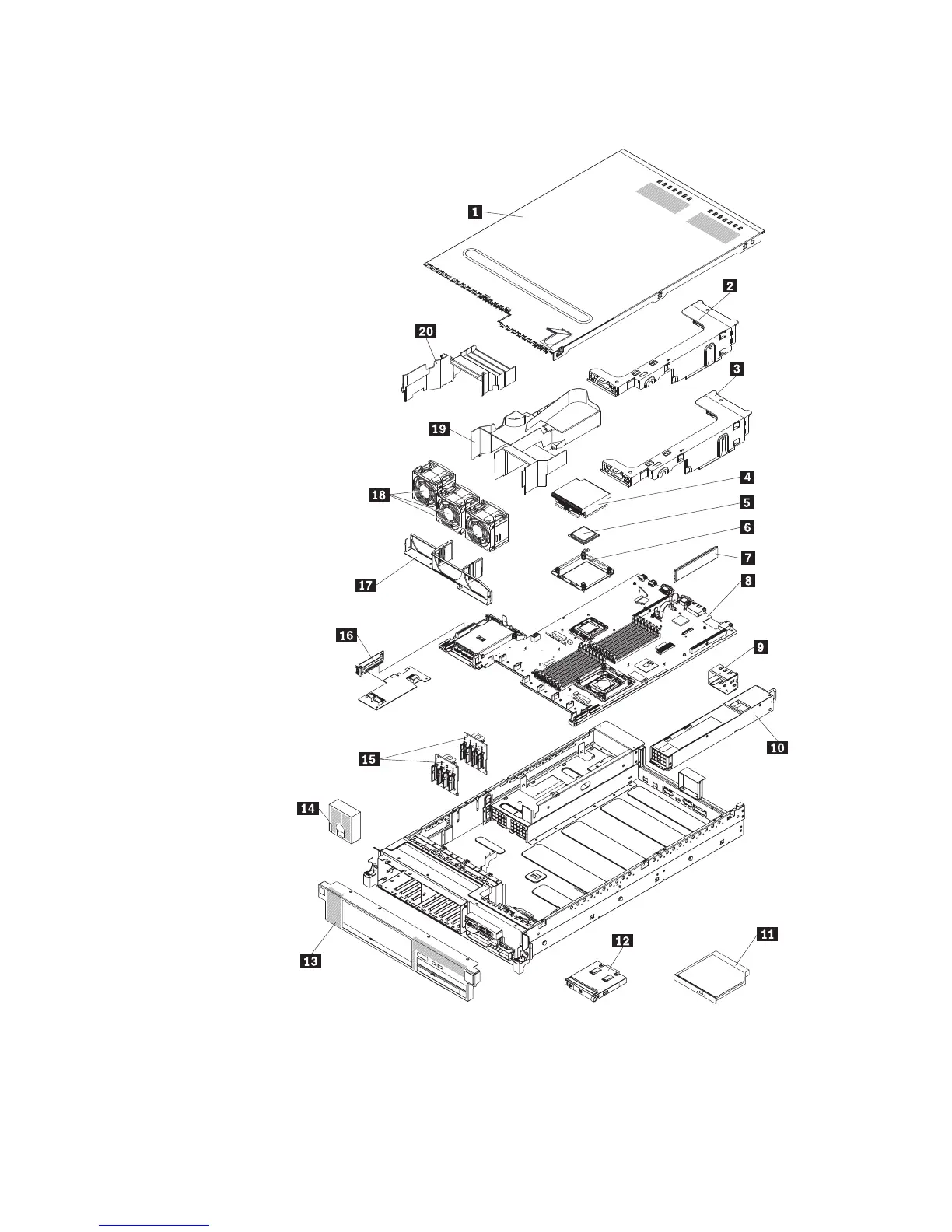 The following illustration shows the major components in the server. The