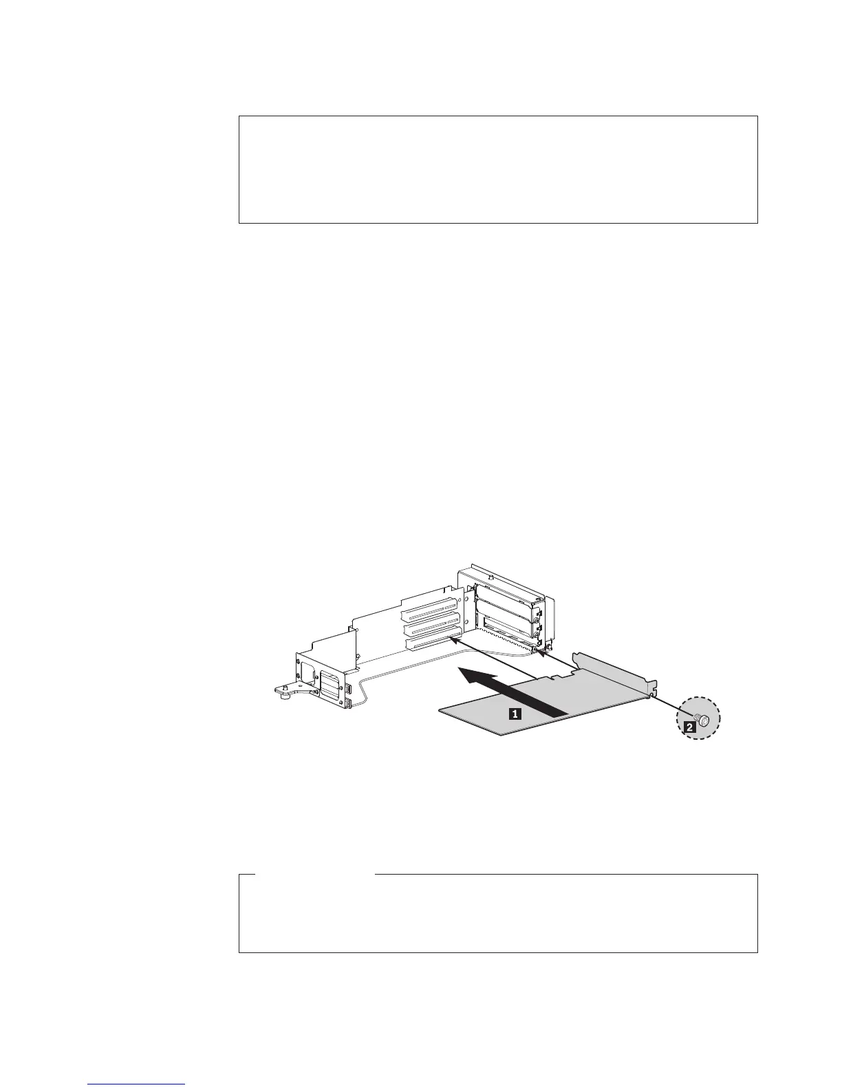 5. Install the PCI card into the slot on the riser card assembly (1). Then, install