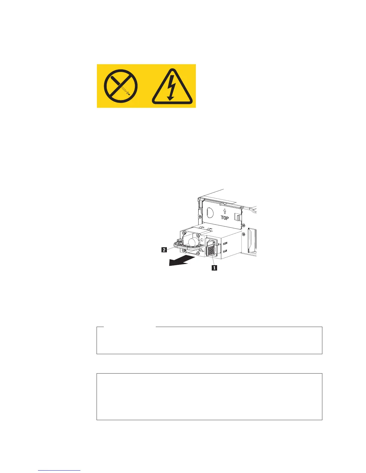 1. Press the tab 1 of the power supply and pull the handle 2 to slide the