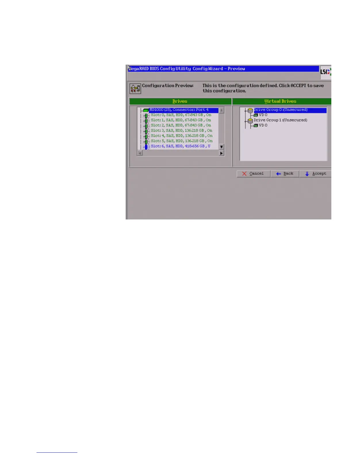 20. If the virtual drive configuration is acceptable, click Accept to save the
