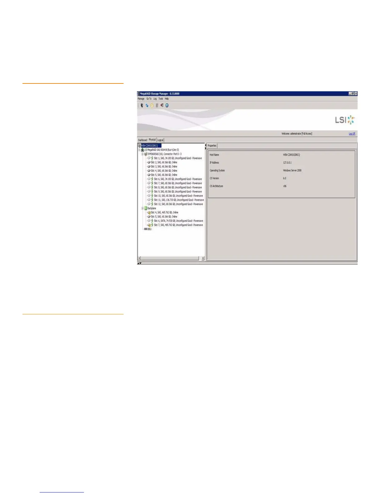 Figure 134: Main MegaRAID Storage Manager Window