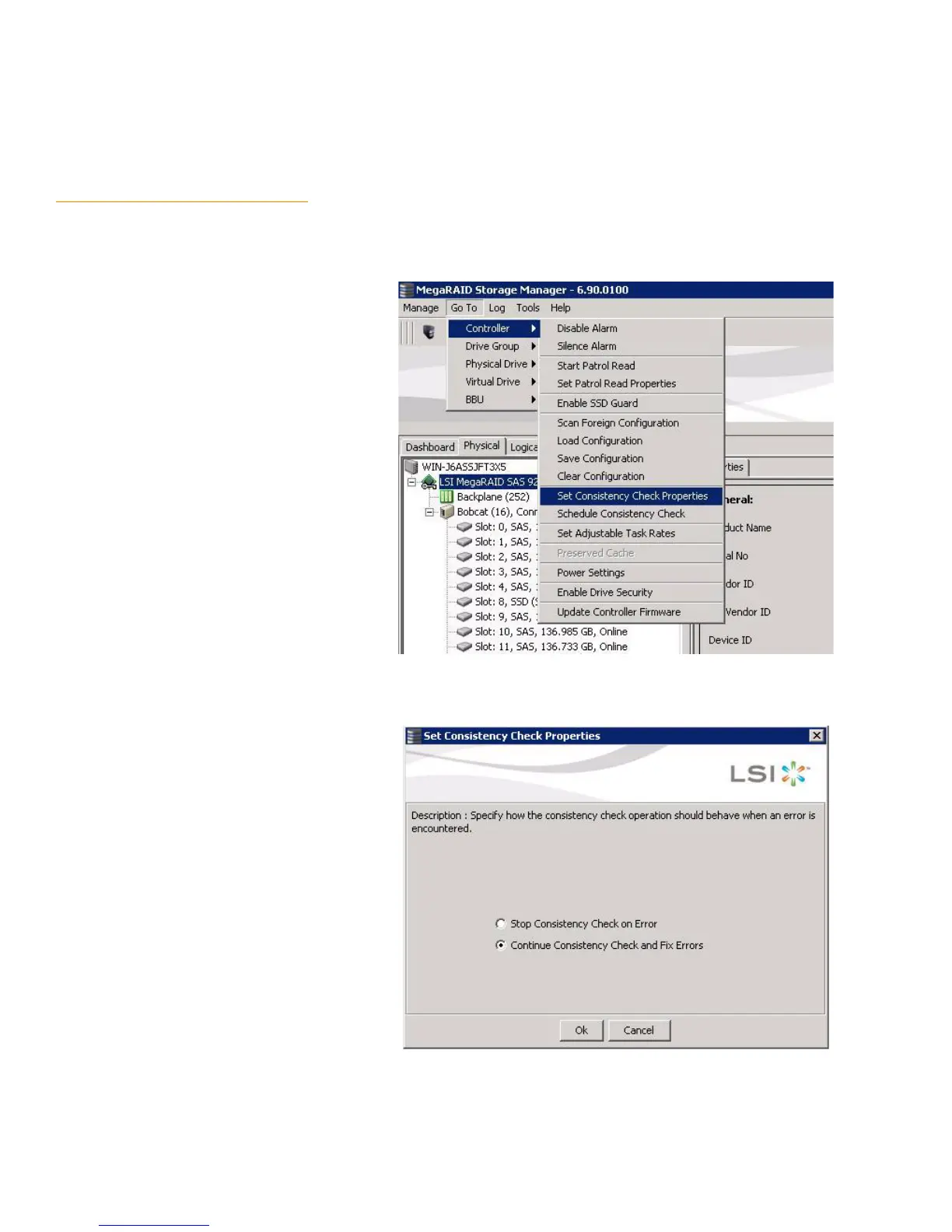 2. Click Go To>Controller>Set Consistency Check Properties.