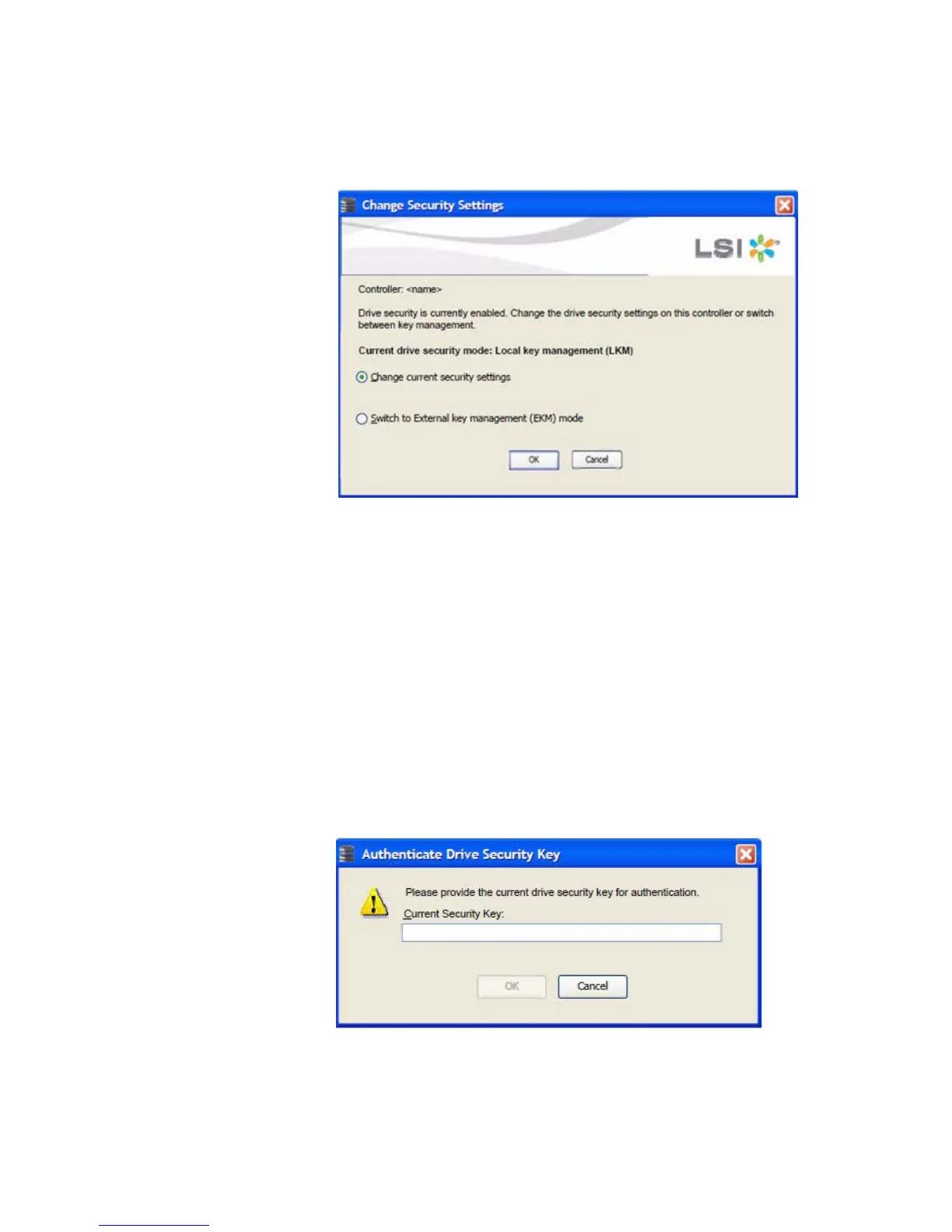 change the drive security settings on the controller using the LKM mode.