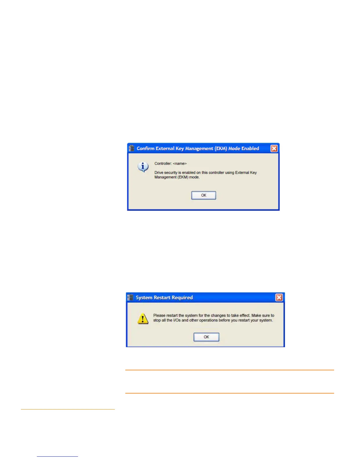 If the EKM server is present, a confirmation message indicating that the drive security is