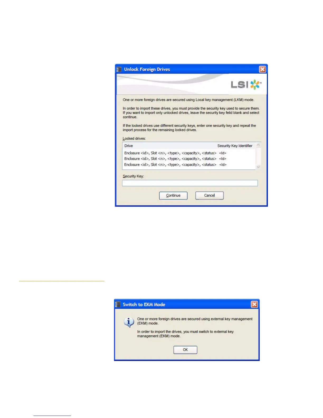 The locked drives field display the drives that are locked with the LKM mode.