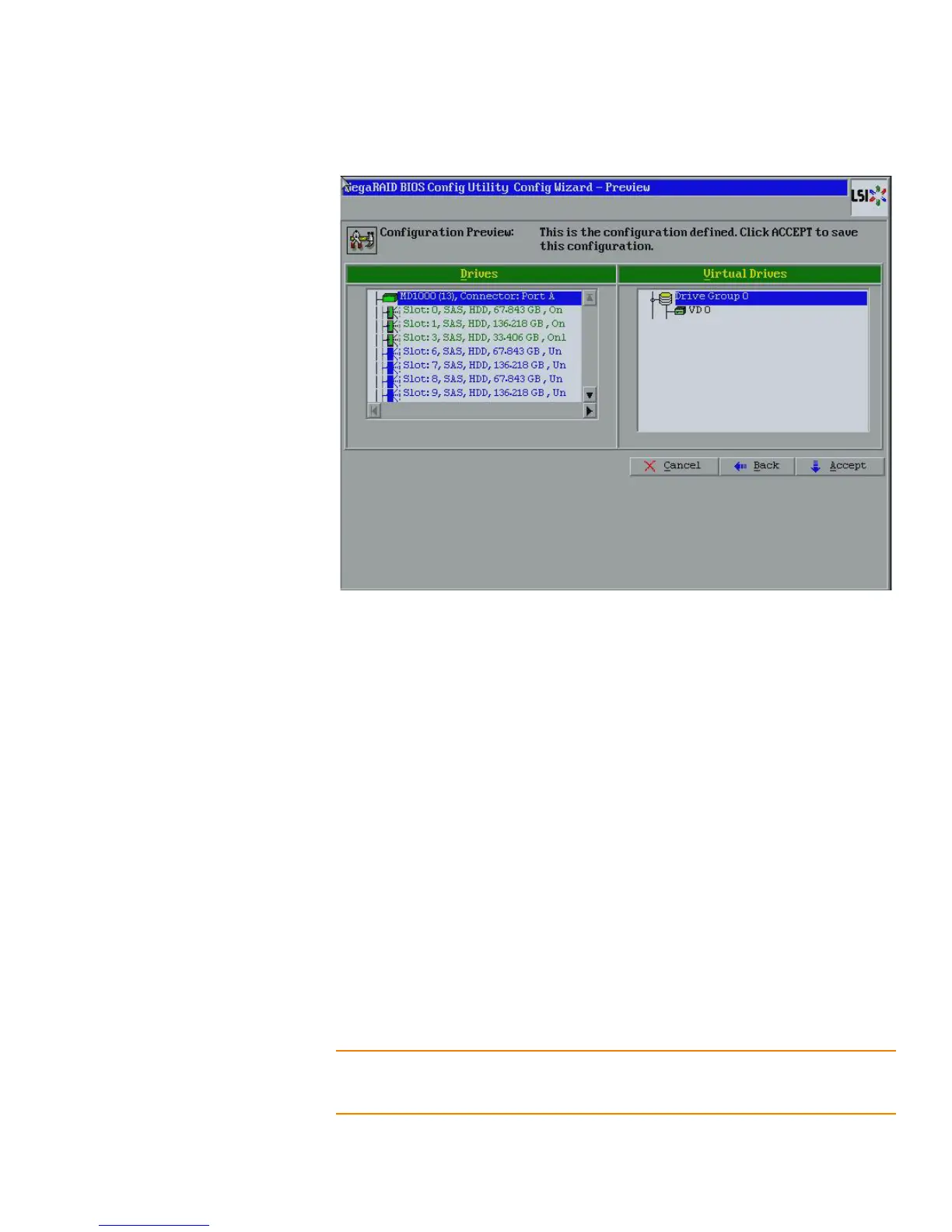 12. If the virtual drive configuration is acceptable, click Accept to save the
