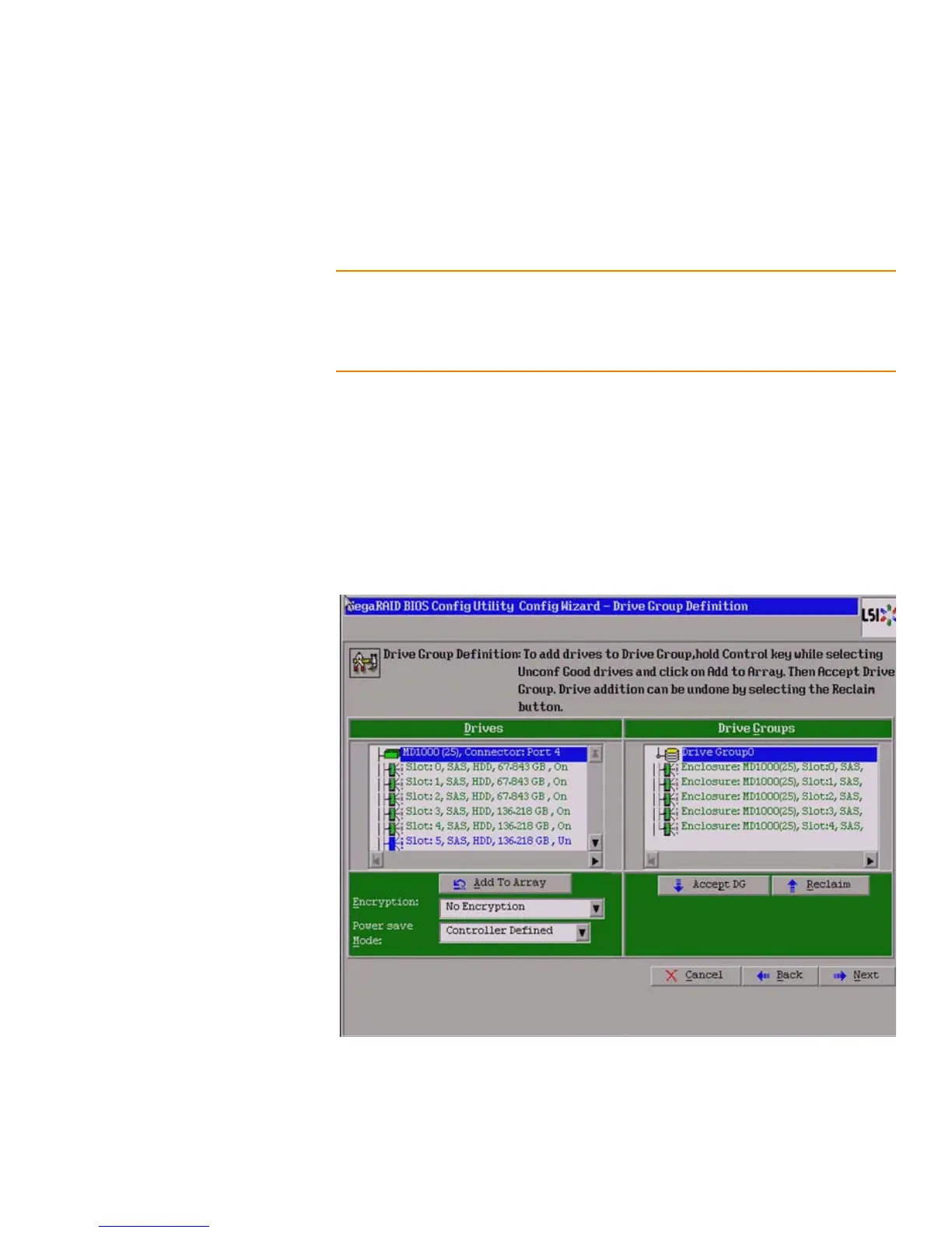 When you select Manual Configuration and click Next, the drive Group Definition