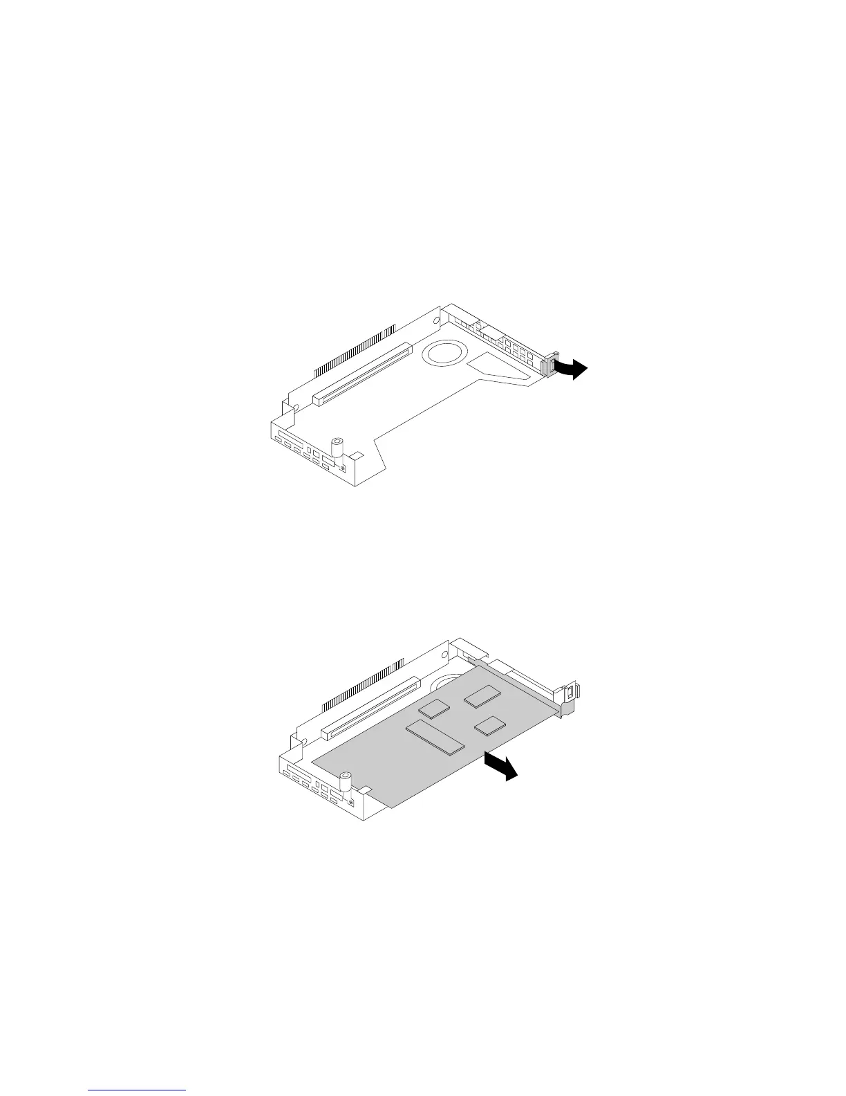 6.GraspthePCIecardbyitsedgesandcarefullypullitoutofthePCIeslotontherisercardassembly.