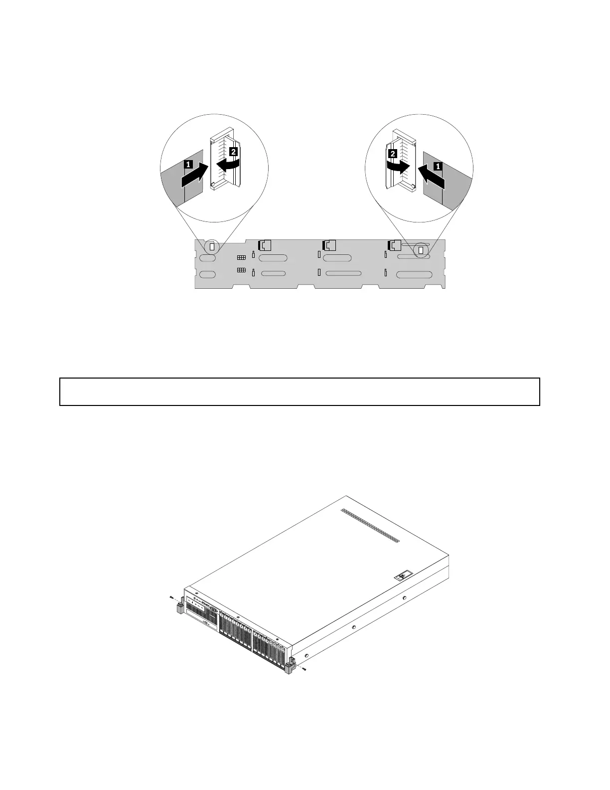 1.Oneachsideoftheserver,removethescrewthatsecurestherackhandleandthenremovetherack