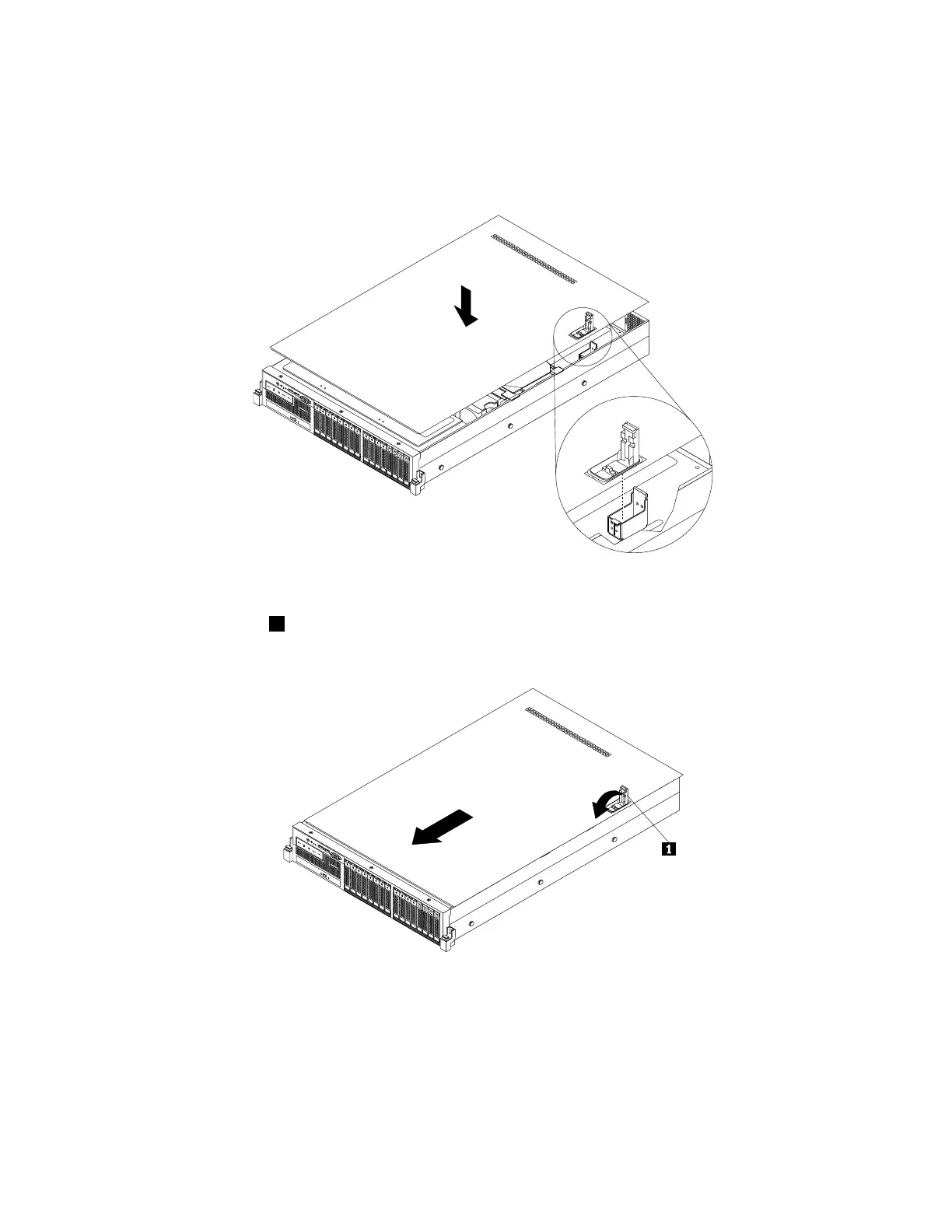 6.Pivotthecoverlatch1totheclosedpositionandslidetheservercovertothefrontofthechassisatthe