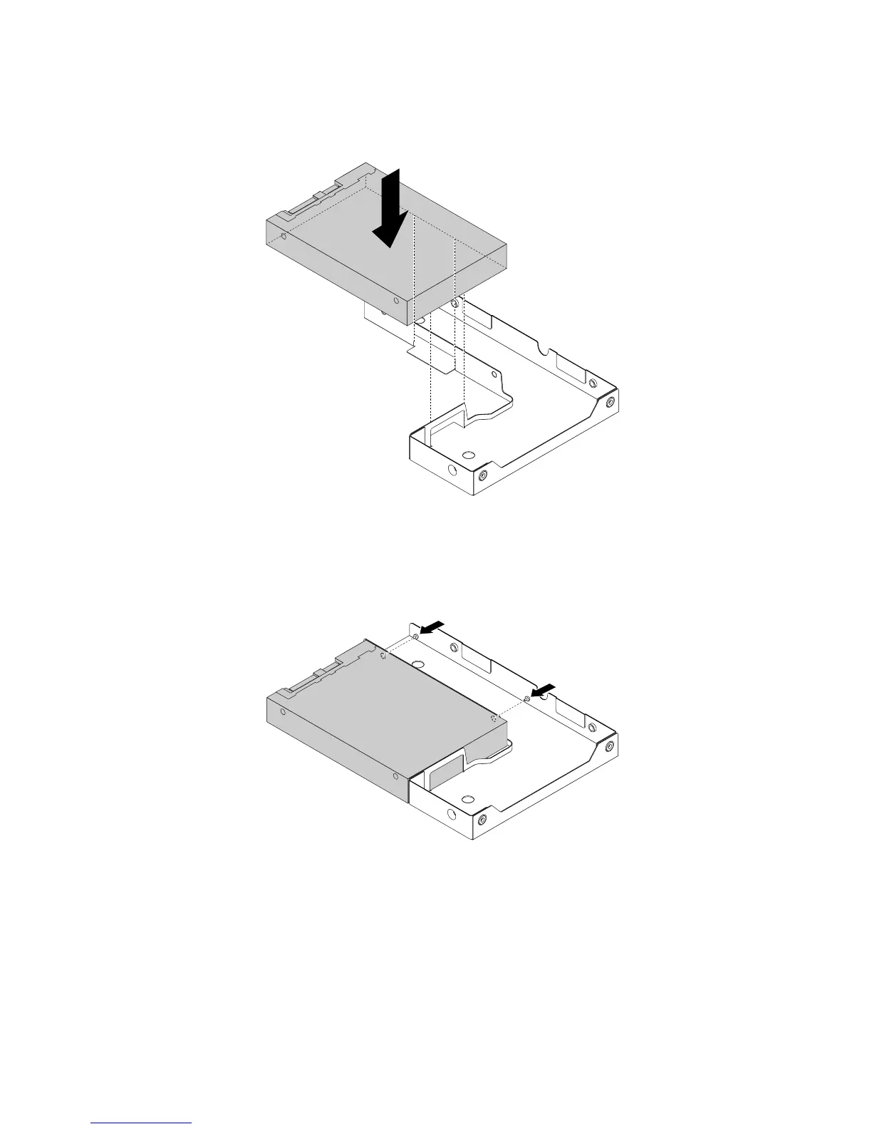 5.Positionthe2.5-inchsolid-statedrivetothe3.5-inchto2.5-inchdriveadapterasshowninthefollowing