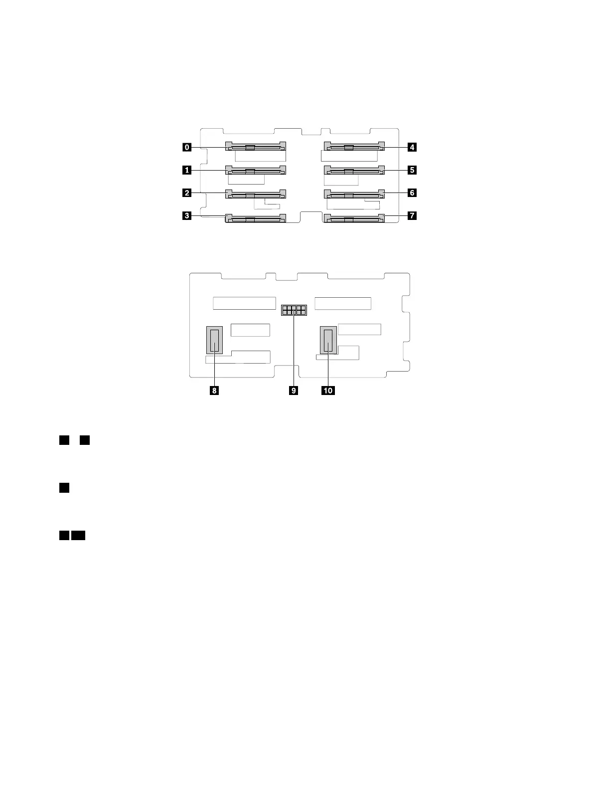 Thefollowingillustrationsshowtheconnectorsonthebackplaneforuptoeight2.5-inchdrives(with