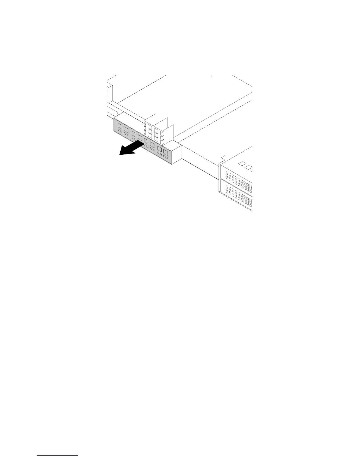 6.PressthemetalshieldthatprotectstheAnyFabricadapterbaytotherearoftheservertoremoveit.