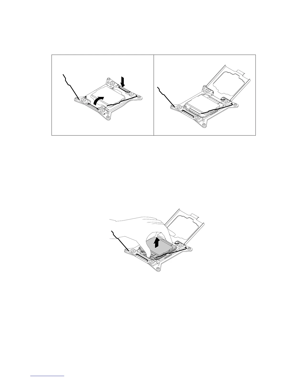 7.Gentlypressthemicroprocessorretainerasshowntoopenit.Ensurethatthesmallhandlesandthe