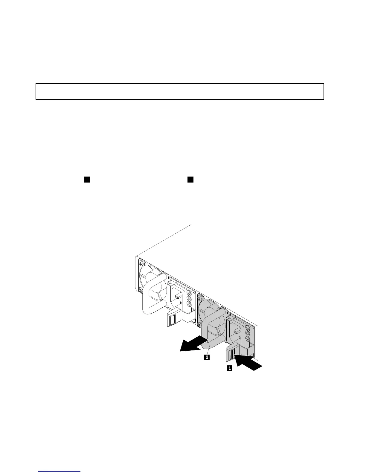 2.Pressthetab1inwardandcarefullypullthehandle2toslidethehot-swapredundantpowersupply