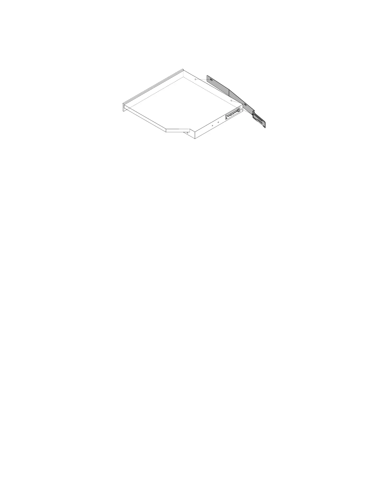 7.Removetheretainingbracketfromtheoldopticaldriveorthedummyopticaldrivetray.Then,installit