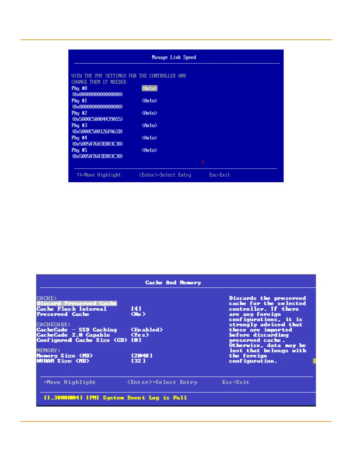 The following dialog appears when you select Cache and Memory from the Advanced Controller Properties dialog.